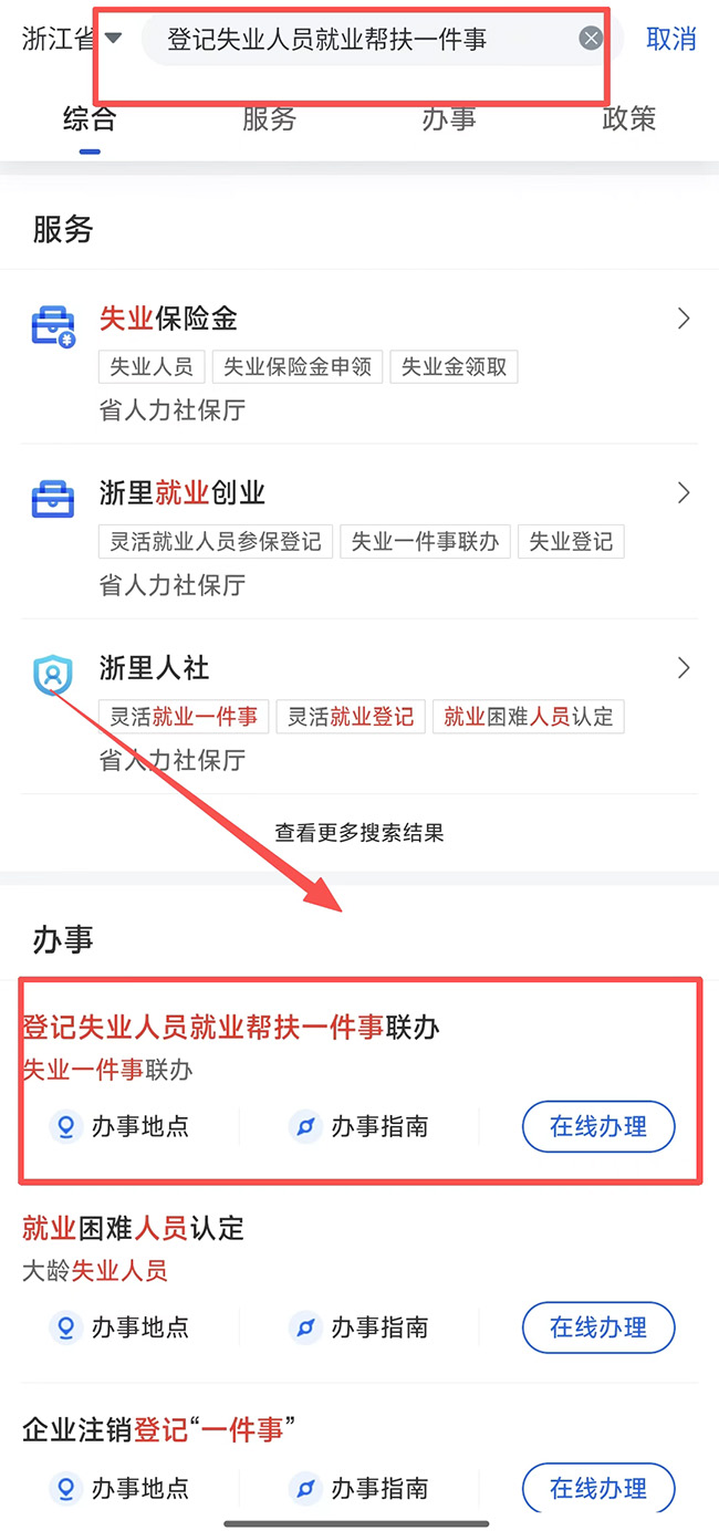 失业登记范围 年满16周岁(含)至依法享受基本养老保险待遇,有劳动能力、有就业要求并处于无业状态的以下人员,可进行失业登记: 1、年满16周岁,未继续升学的各类学校毕业生 2、因各种原因与用人单位解除或终止劳动(聘用)关系的 3、个体工商户、私营企业或民办非企业业主停止经营的 4、承包土地被征用,符合当地规定条件的 5、军人退出现役且未纳入国家统一安置的 6、退出灵活就业,或从事有一定收入的劳动,但月收入低于当地最低工资标准的 7、刑满释放、假释、监外执行的 8、法律、法规规定的其他符合失业登记的人员 失业登记办理地点 由本人向户籍地、常住地、就业地或参保地的街道(乡镇)或社区(村)公共服务平台窗口申请办理,或通过浙江政务服务网、“浙里办”APP线上申请办理。 1、常住地:是指失业人员持有的《浙江省居住证》上记载的现居住地 2、就业地:是指失业人员失业前就业登记地或劳动用工备案地 3、参保地:指失业人员失业前参加社会保险的所在地 浙里办办理 “浙里办”APP、浙江政务服务网、支付宝“浙里办”小程序,搜索“登记失业人员就业帮扶一件事”,就能一键办理失业登记、失业保险金申领等事项。